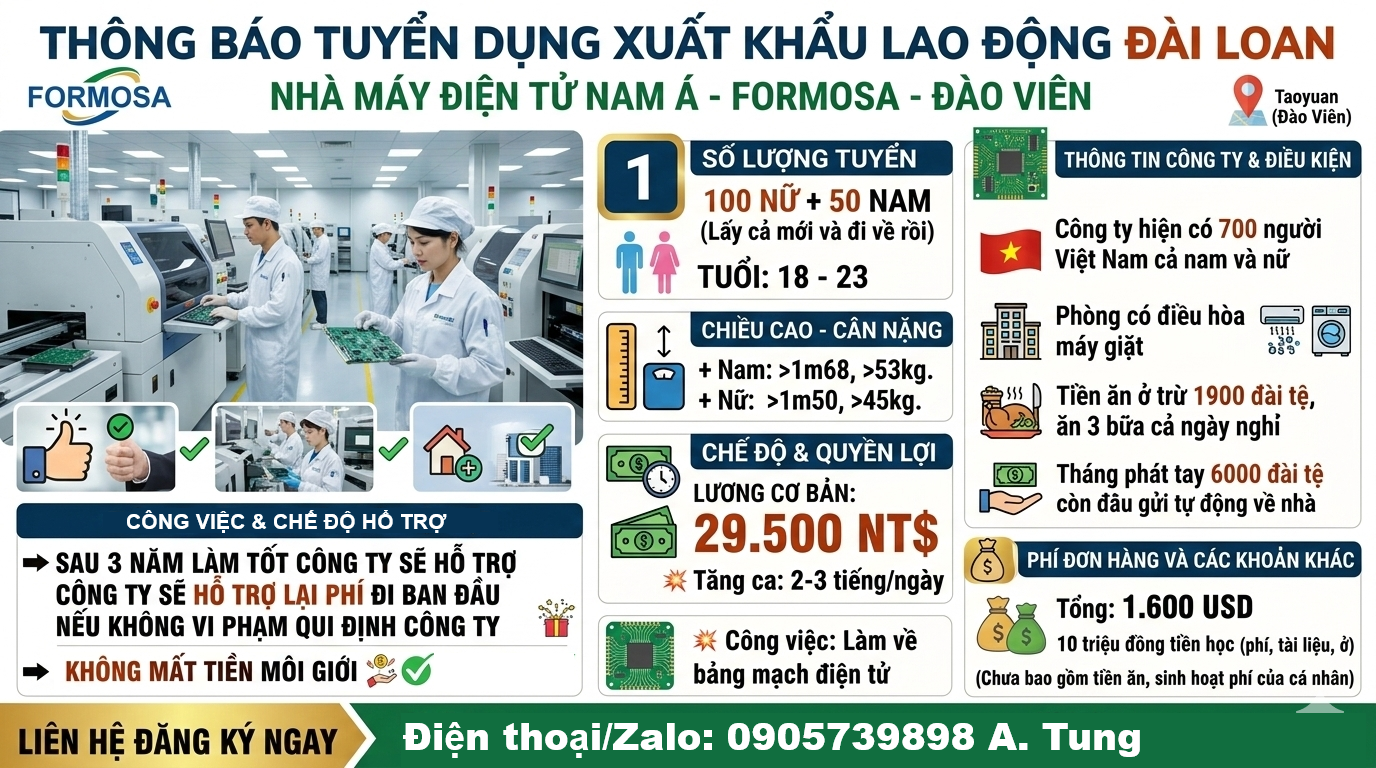 💢 Số lượng tuyển: 100 nữ + 50 nam (lấy cả mới và đi về rồi)