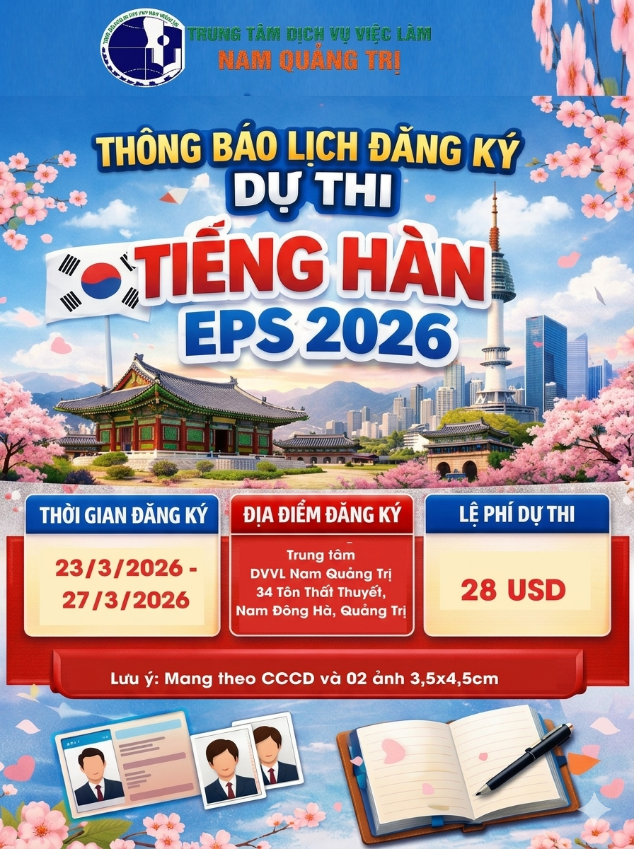 Trung tâm Dịch vụ việc làm Nam Quảng Trị tuyển sinh lớp đào tạo và ôn tập kỹ năng tiếng Hàn cho lao lao động đăng ký dự thi để trang bị kiến thức cần thiết nhằm đạt kết quả cao trong kỳ thi sắp dến, người lao động vui lòng liên hệ đăng ký: 02333577222, hoặc 0233857 111, 0905739898