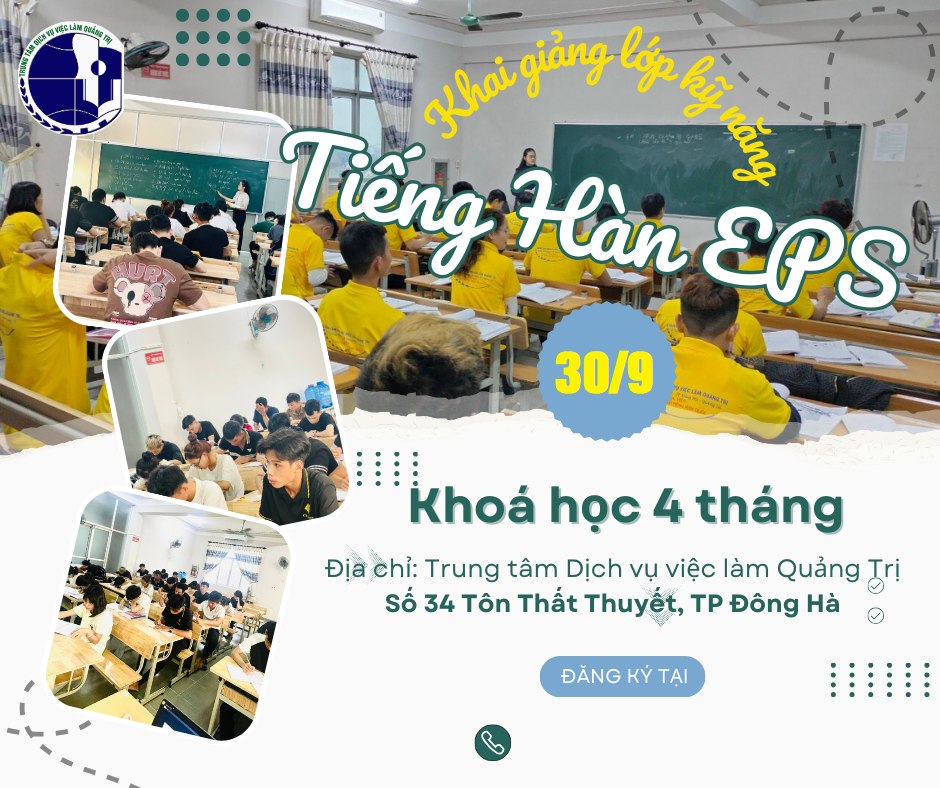 Trung tâm DVVL Quảng Trị là đơn vị duy nhất tại Quảng Trị được phép tổ chức cho lao động tham gia chương trình EPS của Bộ LĐTB&XH. Bạn sẻ được hướng dẫn, hổ trợ tận tình, chu đáo ngay từ ngày đầu đến lúc hoàn thành chương trình