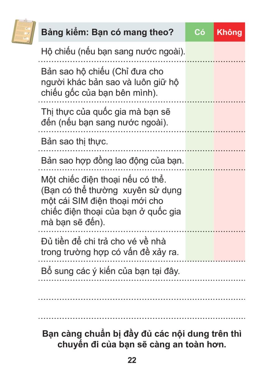 Cẩm nang cho người lao động để phòng tránh mua bán người và di cư không an toàn