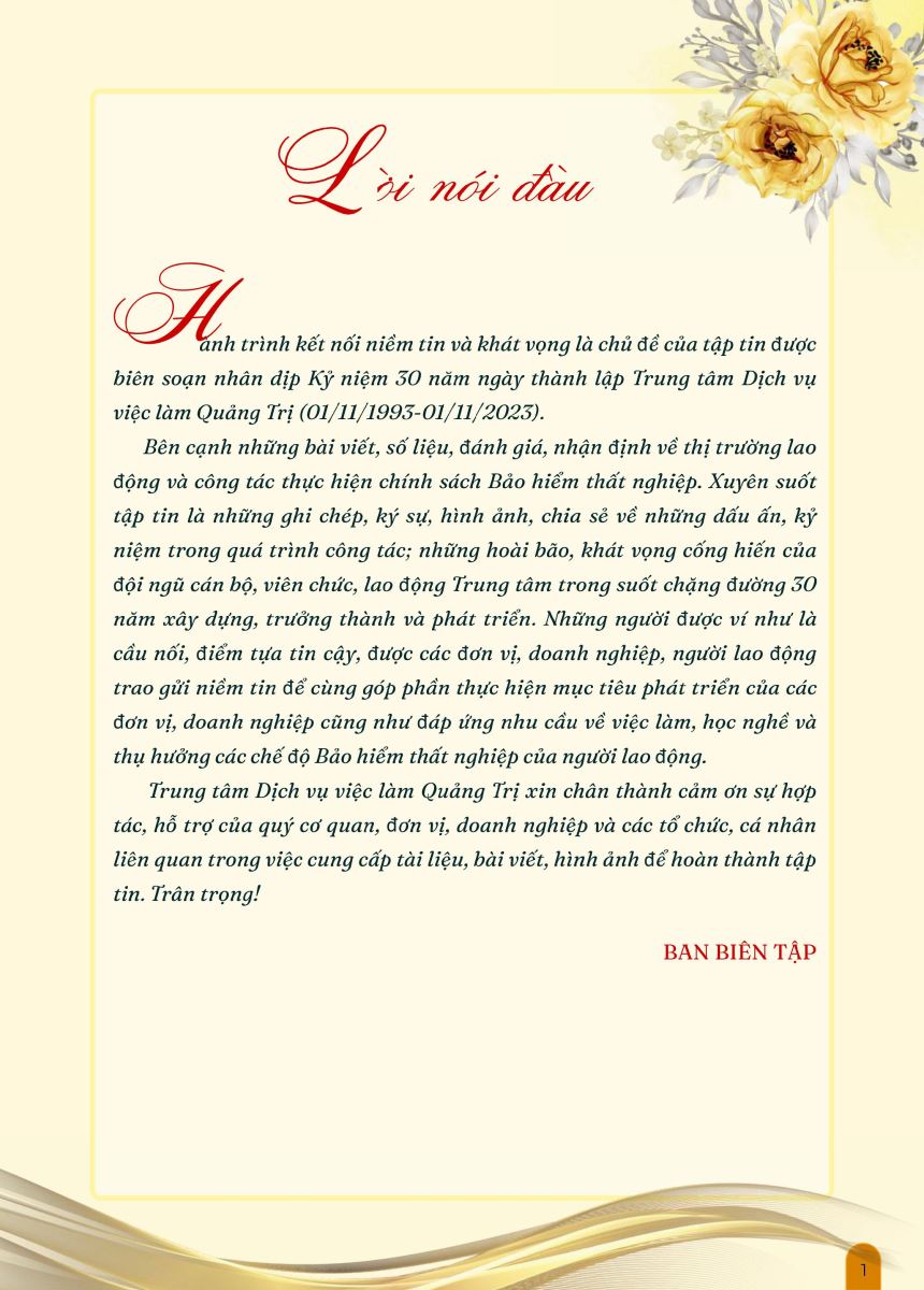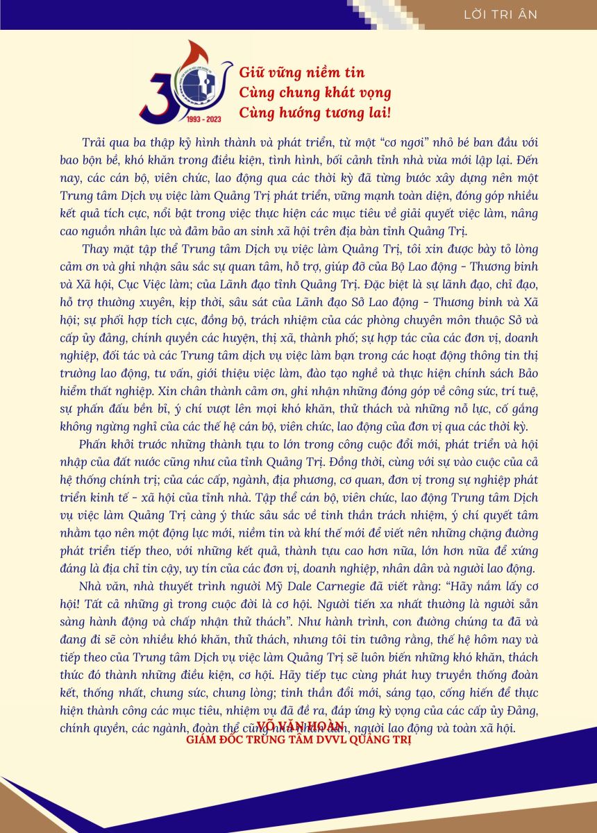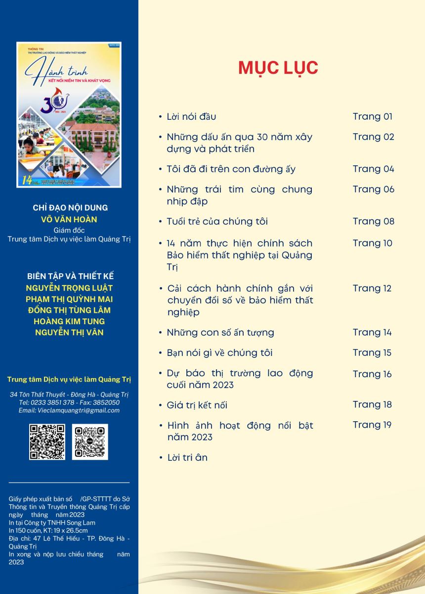 Chuyên san được biên soạn nhân dịp kỷ niệm 30 năm thành lập Trung tâm DVVL Quảng Trị ( 01/01/1993-01/01/2023)