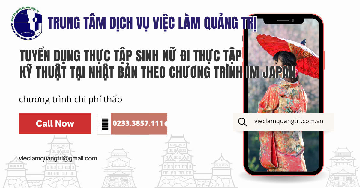 1. Phạm vi tuyển chọn: Toàn quốc 2. Ngành tuyển chọn: Sản xuất chế tạo và chế biến thực phẩm 3. Chỉ tiêu tuyển chọn: 12 người 4. Độ tuổi, giới tính: Nữ giới, từ 18 đến 30 tuổi (sinh trong khoảng thời gian từ năm 1995 đến năm 2007). Chi tiết về điều kiện tuyển chọn xem tại đây. 5. Tiếp nhận hồ sơ: đến hết ngày 20/02/2025 (đối với ứng viên nộp hồ sơ qua đường bưu điện, sẽ tính theo dấu bưu điện của ngày ứng viên nộp hồ sơ). 6. Thời gian tổ chức thi tuyển: Dự kiến Tổ chức thi tuyển vào cuối tháng 02/2025 tại cơ sở đào tạo của Trung tâm Lao động ngoài nước (địa chỉ: Thôn Do Hạ, xã Tiền Phong, huyện Mê Linh, thành phố Hà Nội). 7. Chi phí tham gia chương trình: Được đài thọ hầu hết các chi phí như đào tạo tiếng Nhật, tiền ký túc xá, vé máy bay khứ hồi; miễn phí dịch vụ… 8. Cơ quan tổ chức kỳ thi tuyển: - Trung tâm Lao động ngoài nước là cơ quan duy nhất được Bộ Lao động – Thương binh và Xã hội giao phối hợp với Tổ chức IM Japan tổ chức thi tuyển. - Tổ chức IM Japan giao Văn phòng IM Japan tại Việt Nam phối hợp cùng Trung tâm Lao động ngoài nước tổ chức kỳ thi. Môn thi Toán do Văn phòng IM Japan tại Việt Nam chịu trách nhiệm quản lý đề thi, bài thi. |
