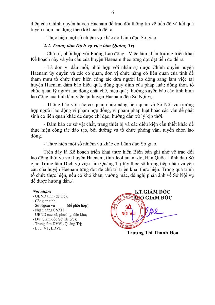 Thực hiện Biên bản ghi nhớ về trao đổi lao động thời vụ lĩnh vực nông, ngư nghiệp giữa Sở Nội vụ tỉnh Quảng Trì và huyện Haenam, tỉnh Jeollanam-do, Hàn Quốc